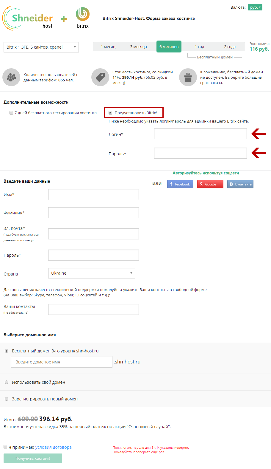А еще мы предустанавливаем Bitrix, при необходимости на любом из тарифов. Просто пометьте соответствующую галочку при заказе. Вот несколько скриншотов, чтобы Вам стало понятнее:
