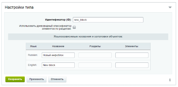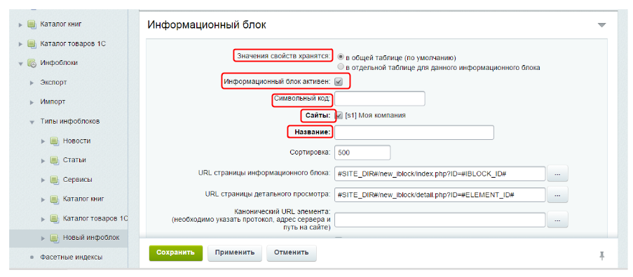 Сохраните изменения и вы увидите новый инфоблок в “Типах инфоблоков”.