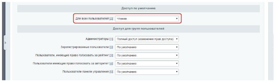 В разделе “Добавить инфоблок” → “Доступ” → “Доступ по умолчанию” выберите “Чтение”:
